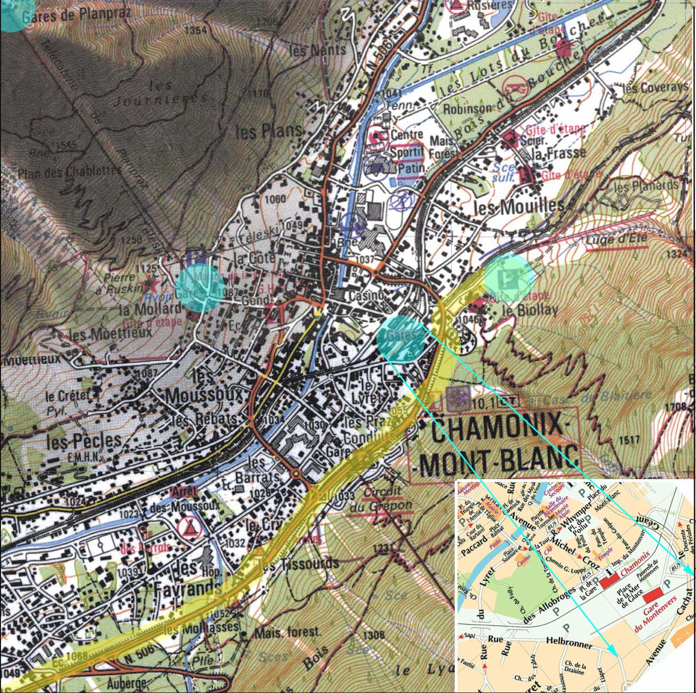 | Access: | Motorway to Chamonix. Park the cars in the parking of the telepheric of Planpraz/Brevent. By walking reach the train station and take train to Martigny to stop in the station of "Le Buet". Trip by car to Chamonix may take 1h. Walking to the train station may take 1/2h. Train time to "Le Buet" is 1/2h. Timetable for the trains can be found in the url: http://www.ter-sncf.com/rhone_alpes/Default.asp |